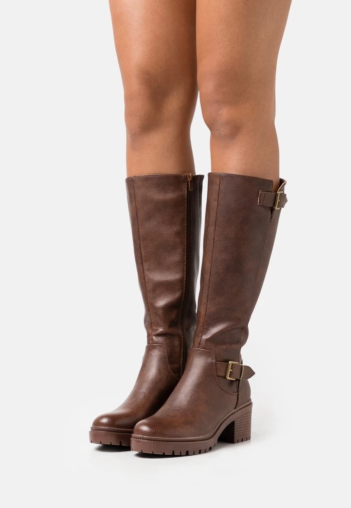 Women’s Anna Field Block Heel Platform Zip UP Platform Boots Brown | KTNOSUE-39