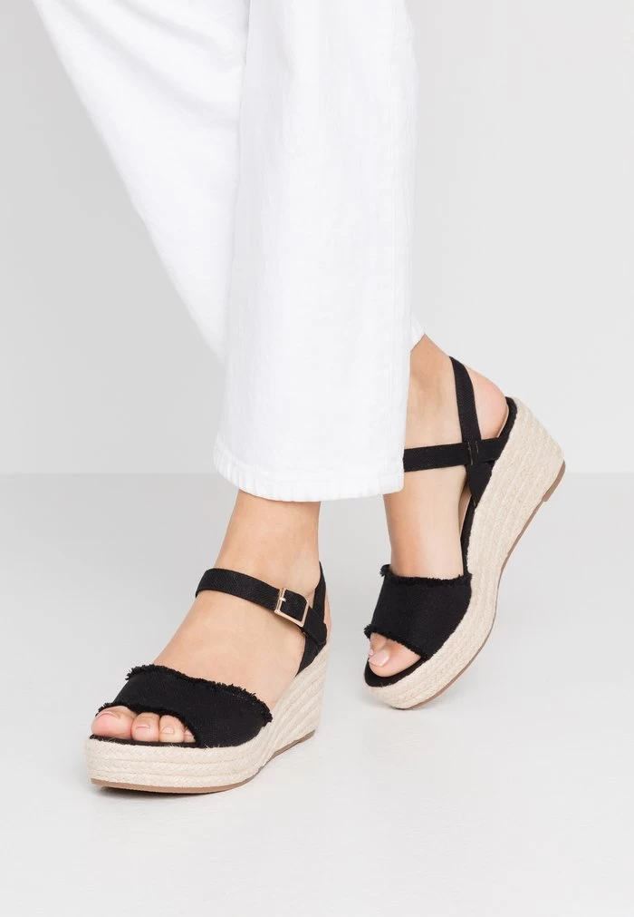 Women’s Anna Field Espadrille Wedge Platform Buckle Sandals Black | QSHRNZB-34