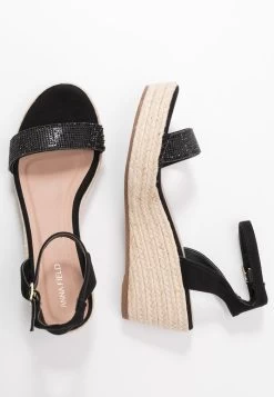 Women’s Anna Field Espadrille Wedge Platform Buckle Sandals Black | YUOWJZN-45