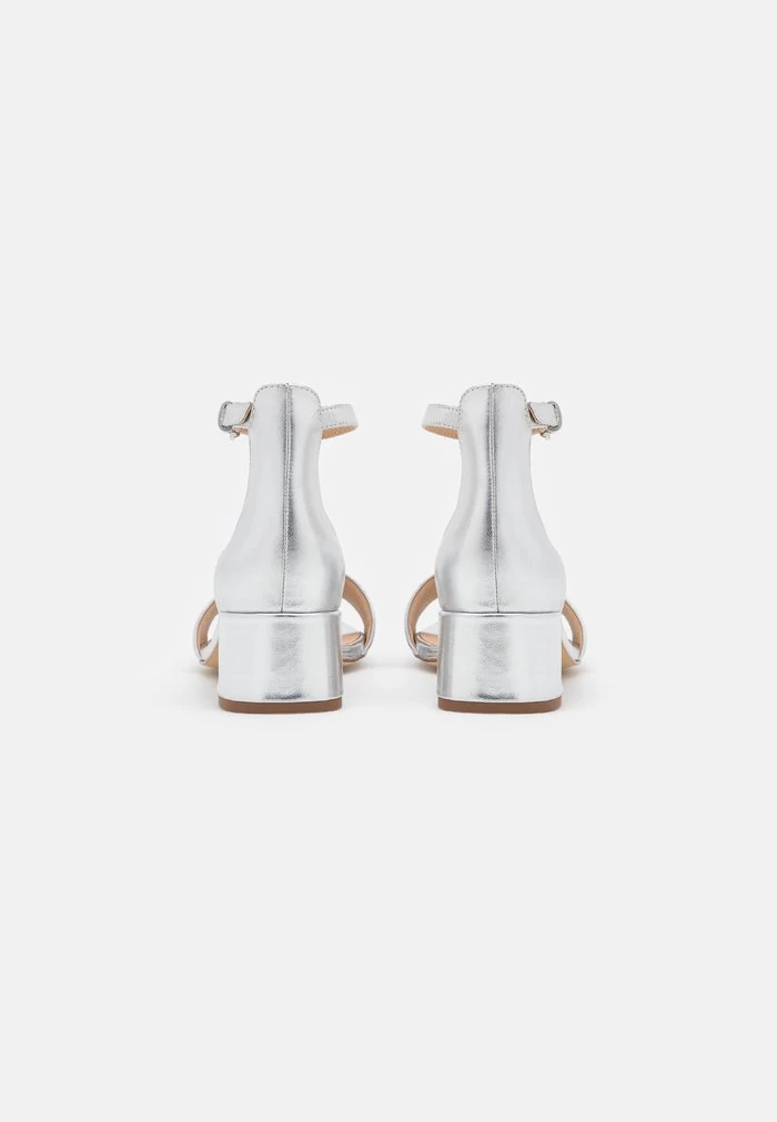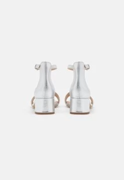 Women’s Anna Field LEATHER Block Heel Buckle Sandals Silver | AJZEVHC-85