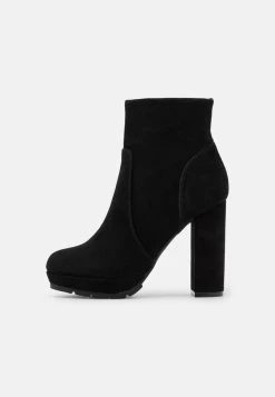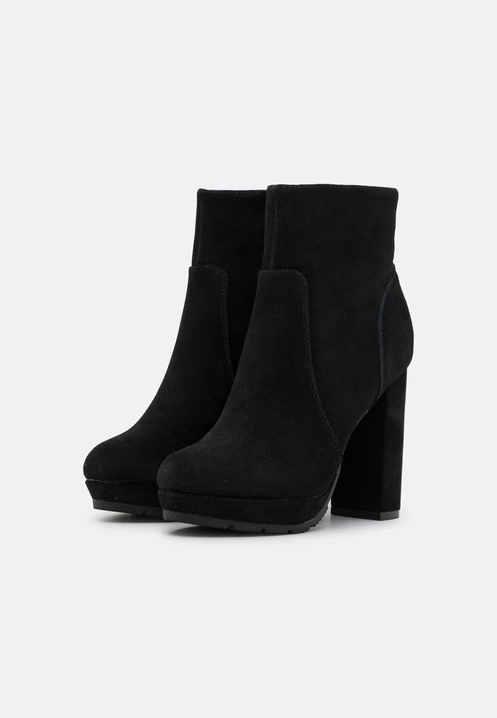 Women’s Anna Field LEATHER Block Heel Platform Zip UP Ankle Boots Black | UZXDWKJ-50