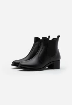 Women’s Anna Field LEATHER Block Heel Slip On Ankle Boots Black | NYKOEWQ-58