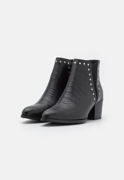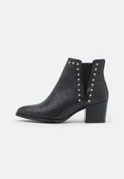 Women’s Anna Field LEATHER Block Heel Slip On Ankle Boots Black | TSLJHWC-94