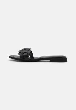 Women’s Anna Field LEATHER Flat Slip On Slippers Black | ZQSYCRP-41