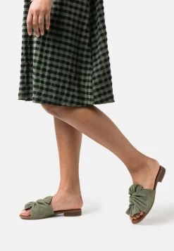 Women’s Anna Field LEATHER Flat Slip On Slippers Green | ONKCADV-61